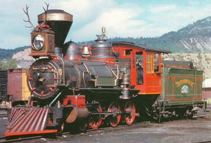 Restoration — When DRHS acquired Emma Sweeney from Amador County, California in 2011, she was missing dozens of wood, metal, and plastic components and bore little resemblance to her original movie appearance. Working from original Twentieth Century Fox studio drawings, DRHS volunteers spent six years rebuilding and repainting every detail — from the elk antler headlight to the Tomahawk & Western banner on the tender. See the restoration →